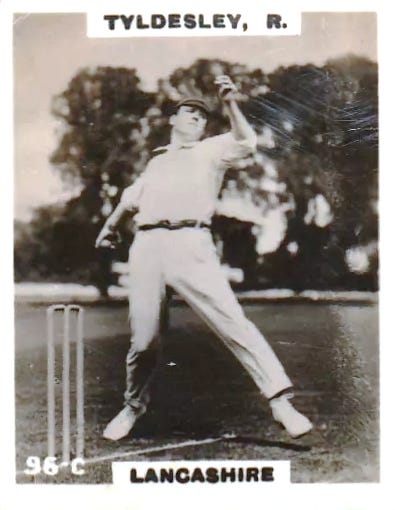 Jack Russell and John Freeman did not put up the shutters, though, but decided correctly that their only chance of success was a positive game, as they again made a fifty opening partnership (57 to be exact) for Essex. Freeman in particular played with more freedom than usual. But wickets fell fairly steadily after that, with Dick Tyldesley working his way very skilfully through the middle and later batting, taking six wickets, and eleven for 193 in the match, inviting the batsmen to hit him with success, although there was some poor catching. Lancashire had to score 76 to win and lost Harry Makepeace to Johnny Douglas without scoring, but then Charlie Hallows and Ernest Tyldesley took them through to victory without any more trouble and with an hour to spare.