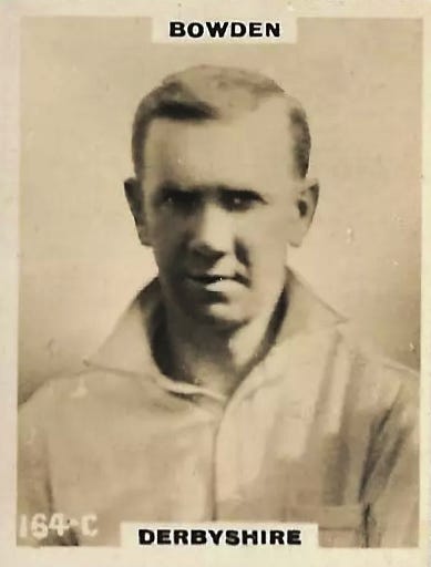 Yorkshire were robbed of virtually certain victory by the rain and the stubbornness of Joseph Bowden. There was heavy overnight rain and showers on and off for much of the day, so that it seemed unlikely that any play would be possible. But around four o’clock the weather started to improve, and just before six o’clock the umpires declared conditions fit for play. When the pitch had been rolled and all other preparations made, play began at 6.15, which meant that with Yorkshire claiming the extra half-hour they had 45 minutes to get the last four Derbyshire wickets. The pitch was soft and slow, giving no help to the bowlers, and the batsmen fought entirely for survival. Yorkshire could take only two wickets, both to George Macaulay, and the Derbyshire opening batsman Bowden was immovable. Roy Kilner and Wilfred Rhodes bowled opposite Macaulay, but were unable to break through, with John Heath, formerly of the Europeans (India) and Staffordshire, on his Derbyshire début, helping Bowden play out the last 25 minutes. Bowden’s fighting innings lasted about 2¼ hours. Derbyshire obtained a rare point for themselves, while Yorkshire had to be content with three and a drop in percentage.