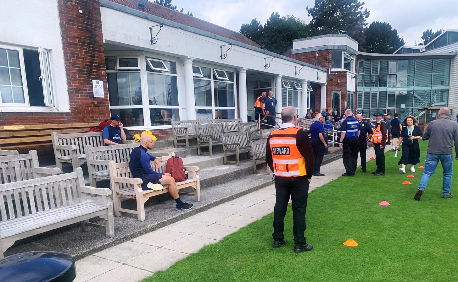 During the tea break, I spotted James Hildrith, the ex-Australian cricketer, engaged in conversation with his son. By then, the sun had broken through the clouds, and I was enjoying my sandwiches.