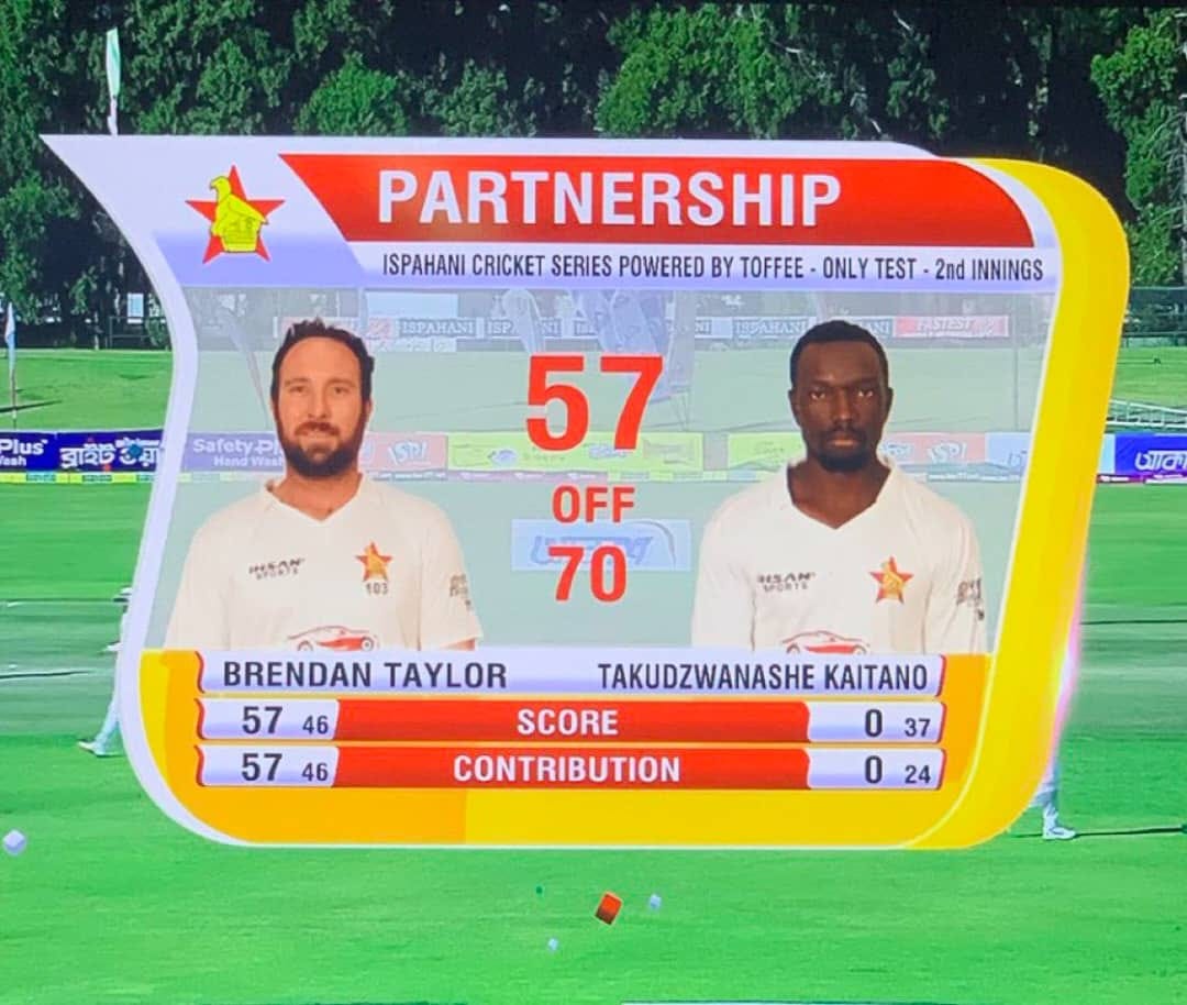 Takudzwanashe Kaitano starts positively. Perhaps he’s turned the corner: His Test strike rate is just 28.04—the lowest ever for a Zimbabwe top-order batsman. Against Bangladesh at Harare in 2021, he went a full hour and eleven minutes before registering his first run. That was