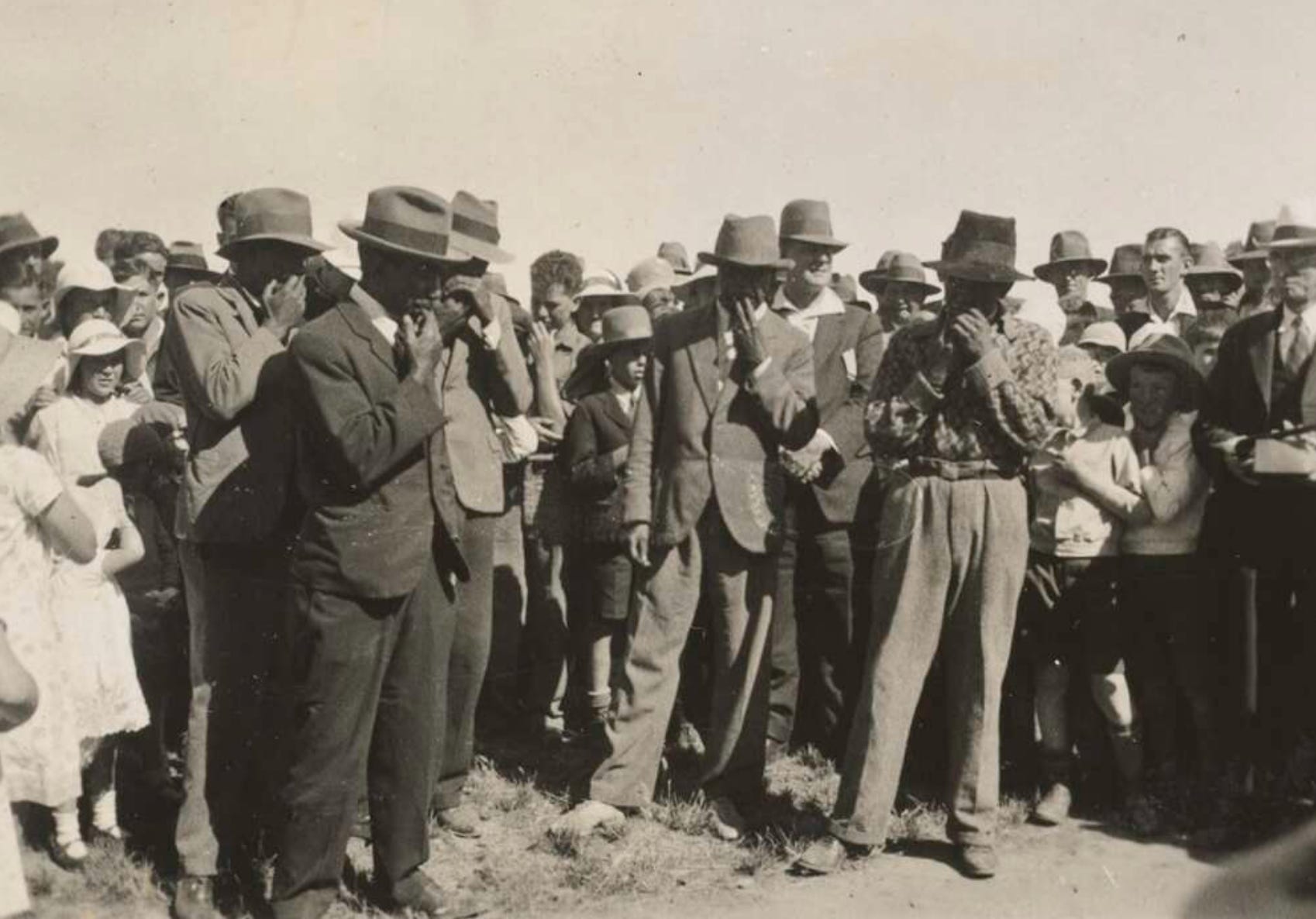The town’s residents turned out to welcome the team’s motor coach, but a puncture delayed their arrival. They dined at the Globe Hotel, escorted by Miss M.E. McDonough, the local association president and a language teacher at Deniliquin High School.