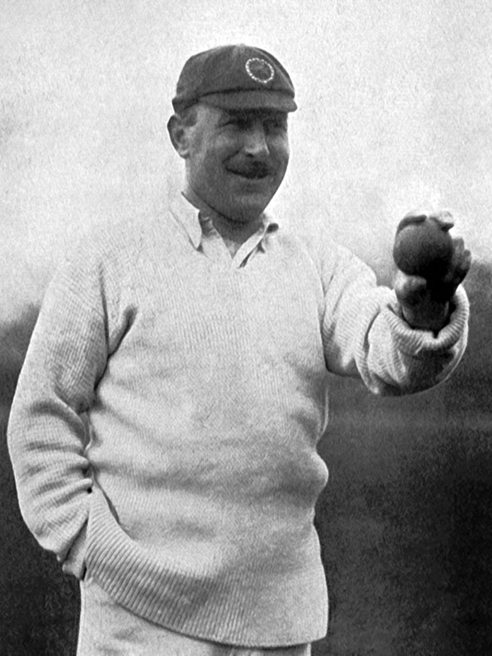 He began his final day with a bat that spoke, as he always did, in emphatic syllables: three fours off Fender, a six that soared over the on-boundary, and a stroke of the utmost delicacy between wicketkeeper and slip. In twenty minutes he made thirty out of 41 before getting trapped leg-before. But even in dismissal he was decisive and commanding: He declared the innings closed there and then.